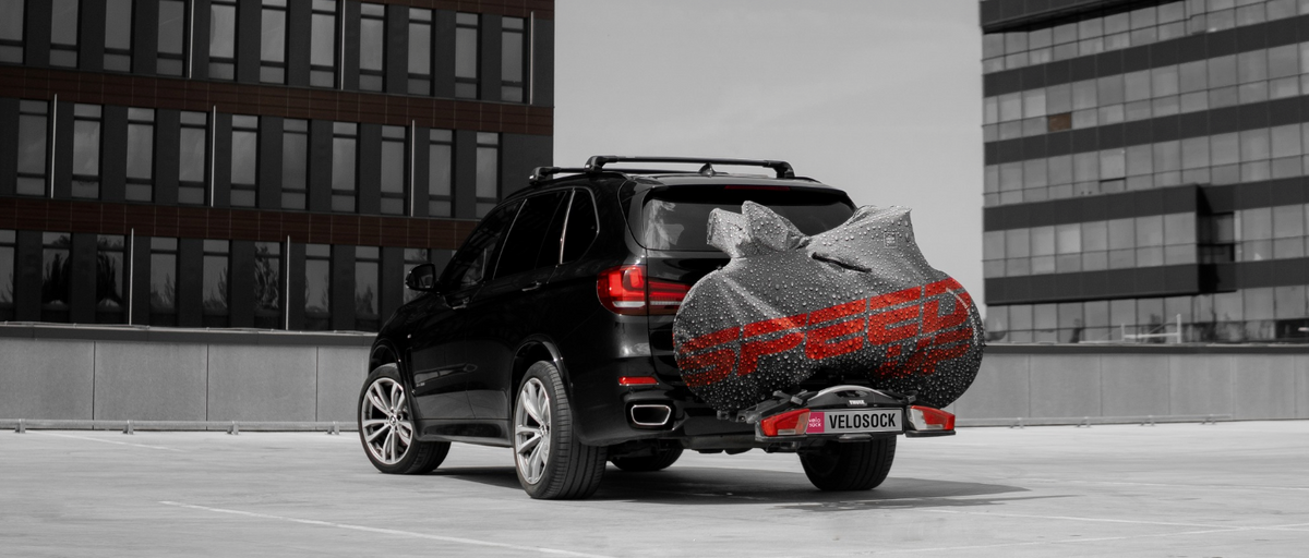 The VELOSOCK Bike Cover for car racks is compatible with the majority of rear car bike racks thanks to the several thoughtfully placed openings on the sides and in the bottom. The openings give access to the bike's frame and tires so that you can secure it to the rack in different ways. Please also make sure that your bike does not exceed the height of your vehicle as parts outside the turbulence zone may create aerodynamic drag. Although our Bike Covers for car racks are compatible with most rear car bike racks, we strongly recommend using 3-point fixation rear car bike racks as in the picture Here are the most popular types of rear car bike racks that work well with VELOSOCK