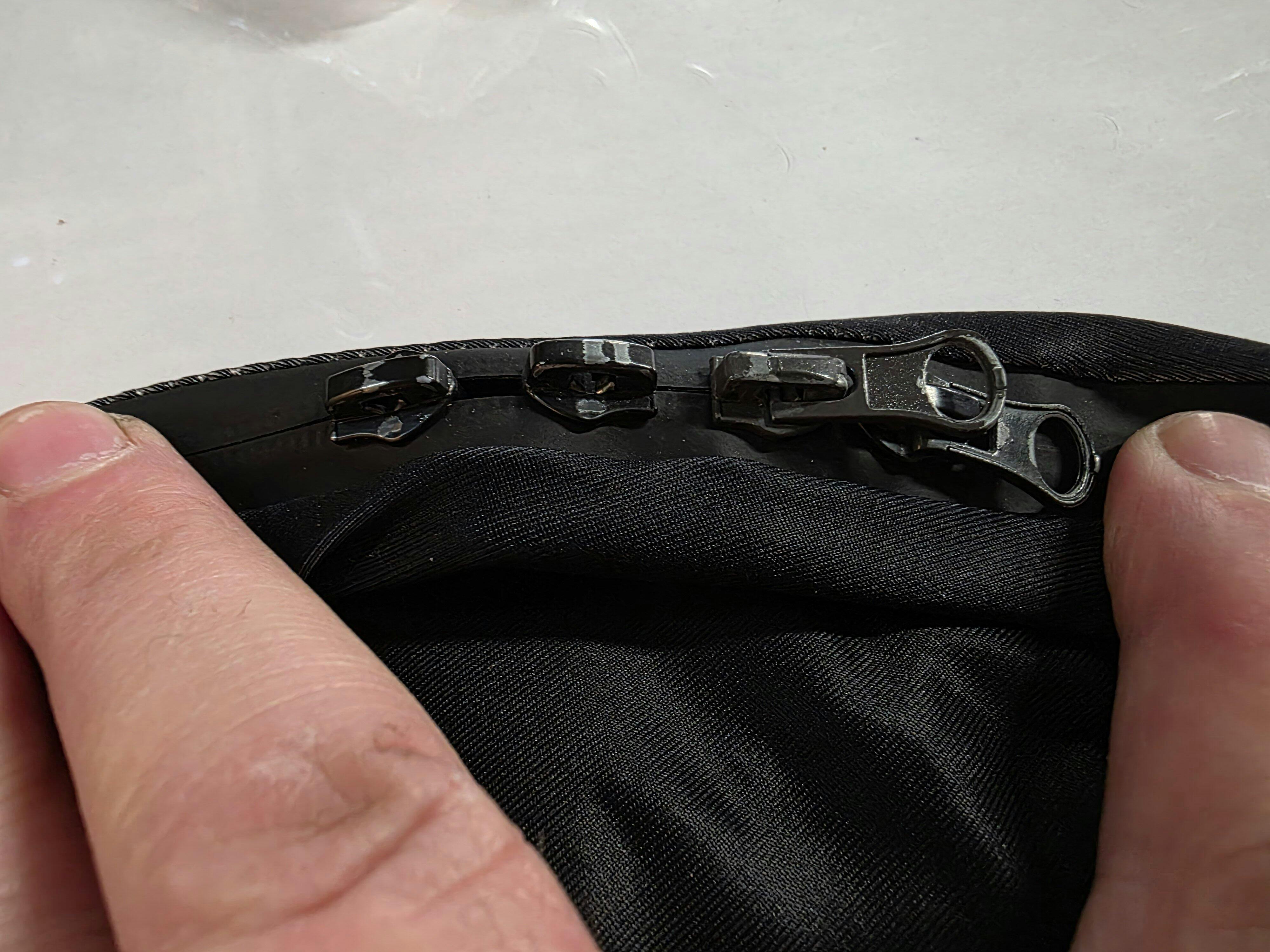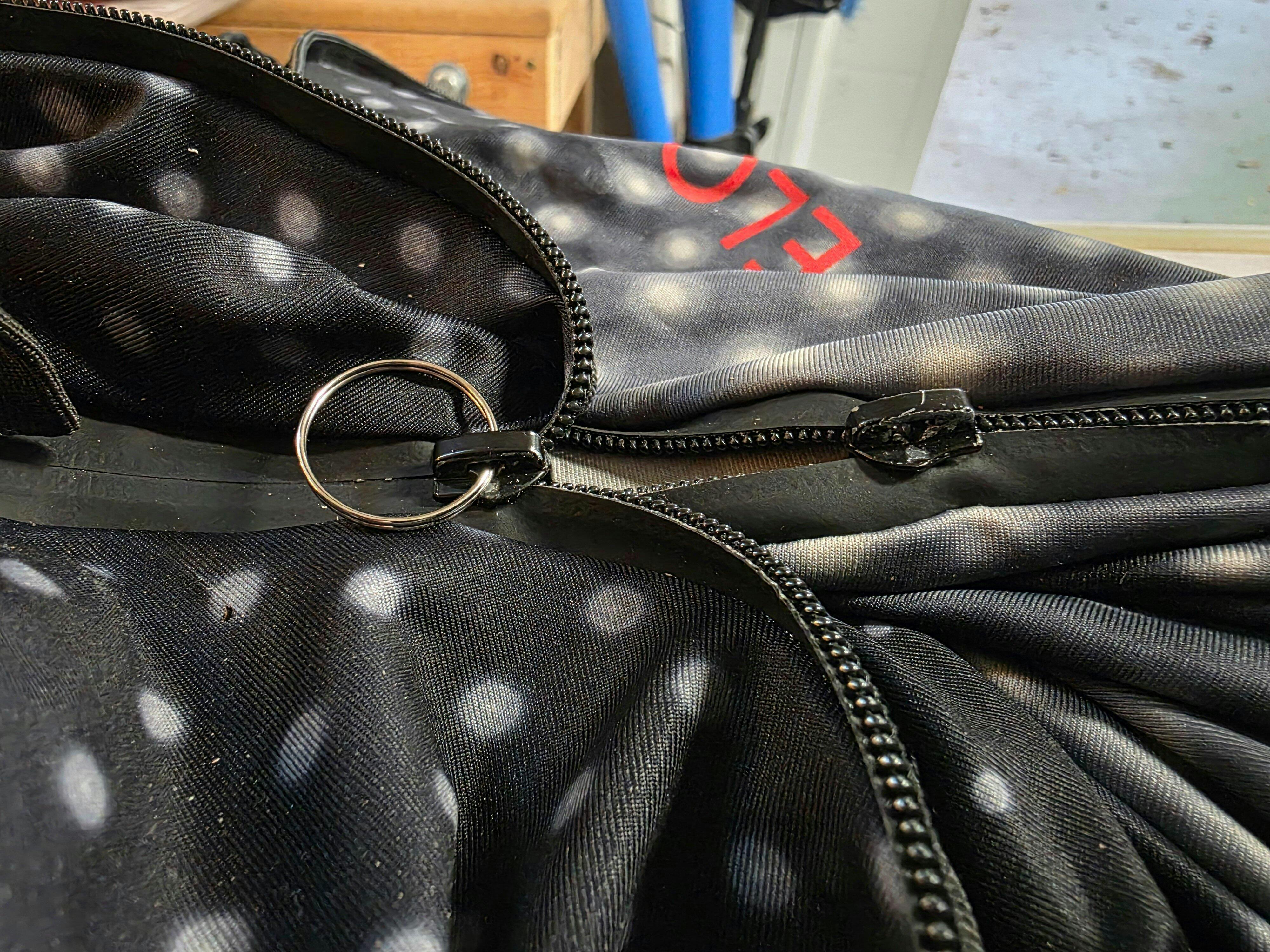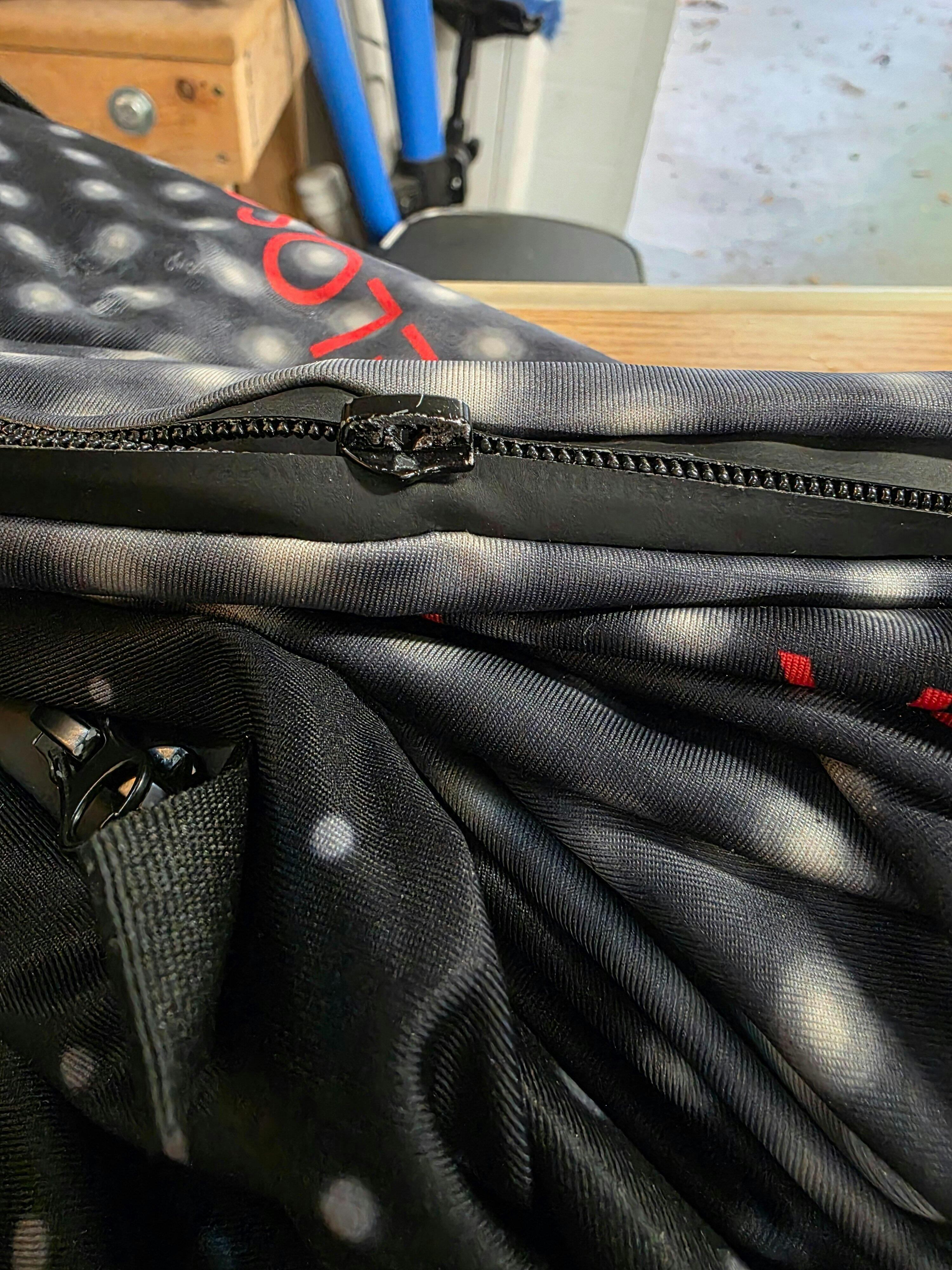 2. Lift the cover up and place the handlebars in the corresponding pockets. Start to close the zipper.